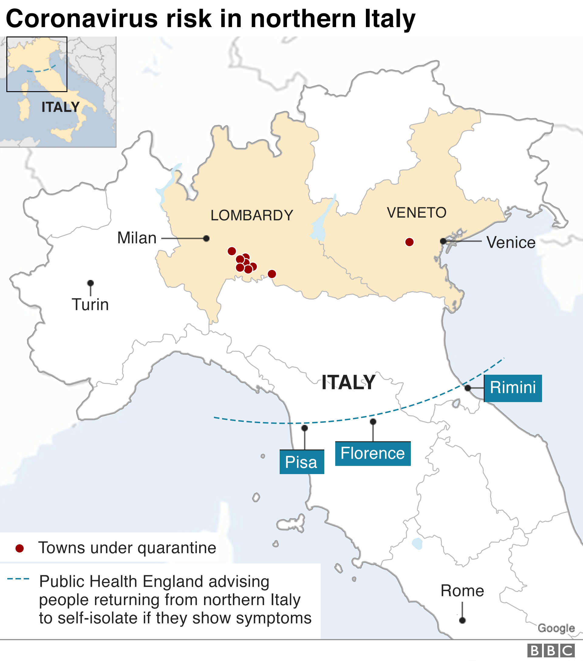 And those who have travelled north of Pisa are asked to stay at home for 14 days if they develop flu-like symptoms.