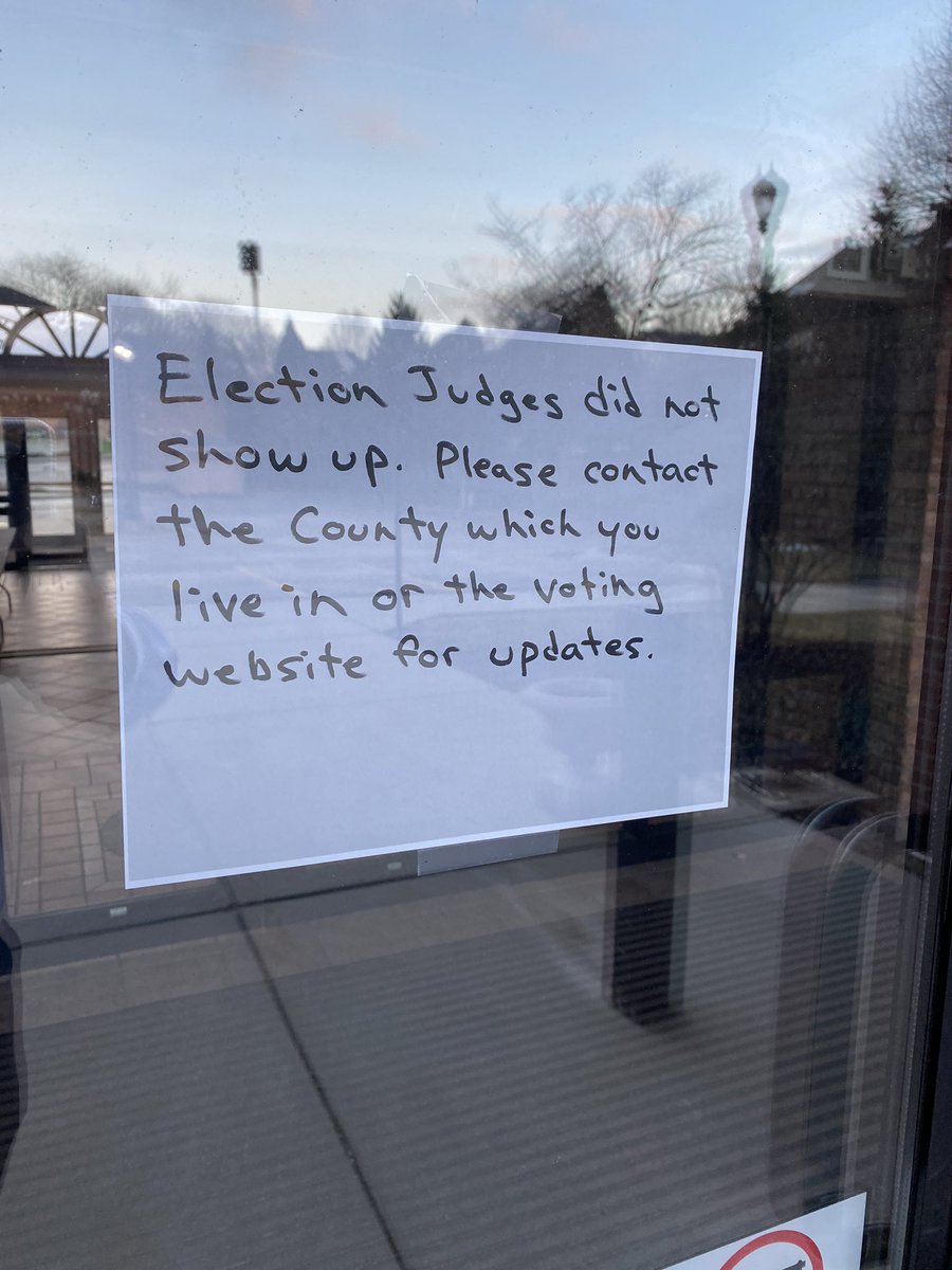 Meanwhile, voters in Barrington, Illinois, north-west of Chicago, reported showing up to their polling place only to find it closed because no poll workers showed up.
