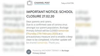 A medical centre less than a mile from the school has also closed due to a “confirmed case of coronavirus”.